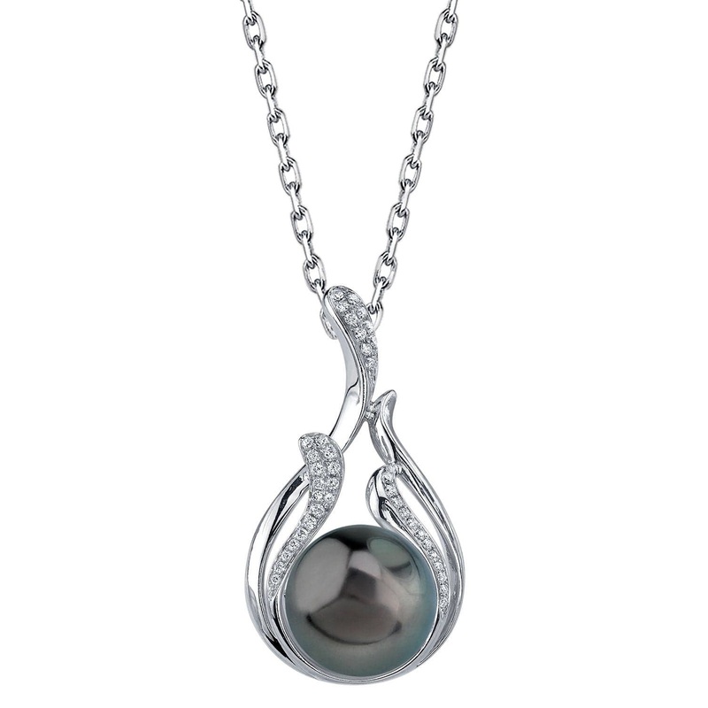 This gracefully curving pendant showcases a stunning black Tahitian pearl paired with sparkling diamond accents. You’ll be captivated by its elegant design and the way it beautifully enhances your style. The combination of the rich, dark luster of the pearl and the glimmering diamonds creates a piece that truly reflects warmth and love. Each pendant is customizable, allowing you to choose your preferred pearl size, quality, and 14K gold color to match your personal taste.