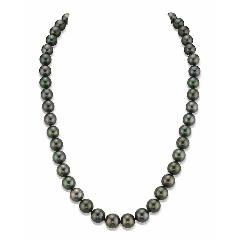 This elegantly designed necklace features darkly shimmering pearls that catch the light beautifully. You’ll appreciate the classic rich green and iridescent peacock overtones, highlighted by warm rose flashes. Each pearl, sized between 8.0-10.0mm, is crafted to perfection, ensuring you look and feel luxurious. The individual pearls are double-knotted on matching black silk and secured with your choice of a 14K gold clasp. Each purchase comes carefully nestled in our signature Little Black Jewelry Box, complete with a Certificate of Authenticity and Pearl Care Instructions.