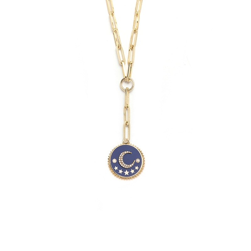 Blue Crescent : Champleve Classic Fob Clip Extension Chain Necklace