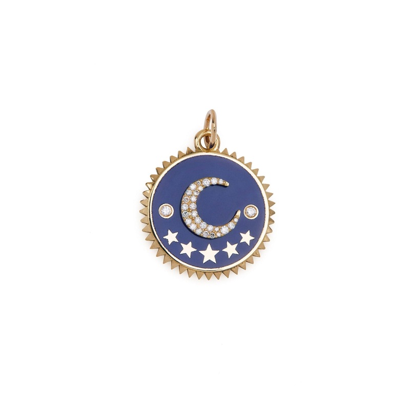 Handcrafted in 18-karat gold, this Medium Champleve Medallion fused in blue enamel represents karma. Every day, every moment, we make choices. We have a choice regarding what kind of energy we want to put out there in the world. The symbol of the Crescent Moon was chosen for its Latin root word, crescere, to grow. It reminds us that every day is a new day to grow inwardly by seeking truth and enlightenment.