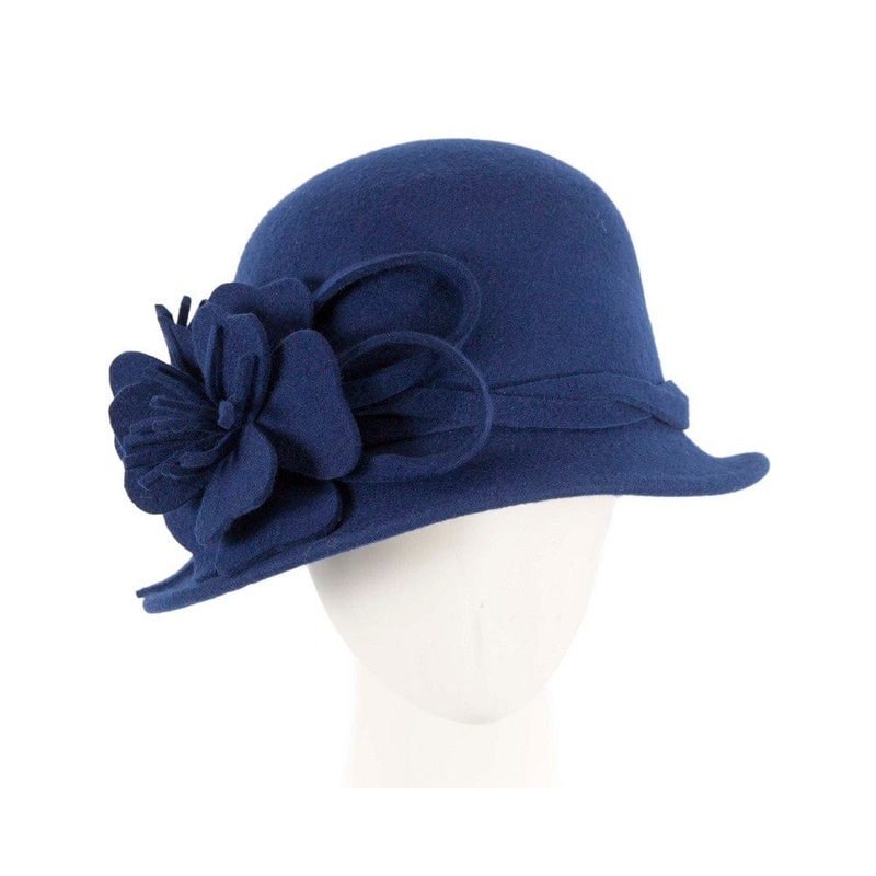 Blue felt cloche hat with short brim and hand-made felt flower. Winter fashion hat Cloche hat Renown Max Alexander brand Fits up to 58cm