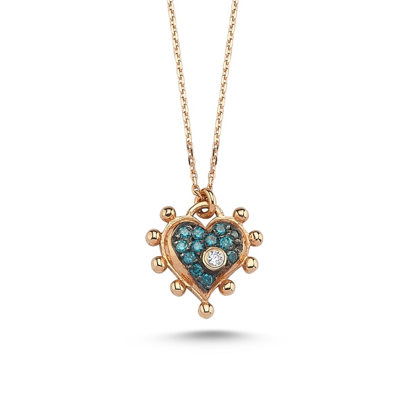 The Blue Heart Necklace is made from 14k rose gold, and features a heart shaped pendant filled with blue diamonds and a single white diamond in the centre.The Blue Heart Necklace is part of the Art Of Giving Collection bySelda Akgl.Art of Giving Collection