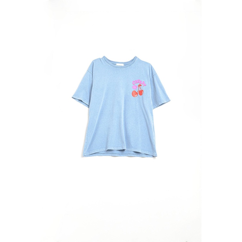 The lively cherry graphic pops beautifully against the soft blue backdrop, adding a playful and eye-catching detail to this easygoing tee. Whether you’re pairing it with jeans for a casual day out or layering it under a jacket for a fun twist, this Italian-made t-shirt delivers a perfect blend of whimsy and everyday versatility. It’s a fresh take on casual dressing that adds just the right amount of personality to your look.