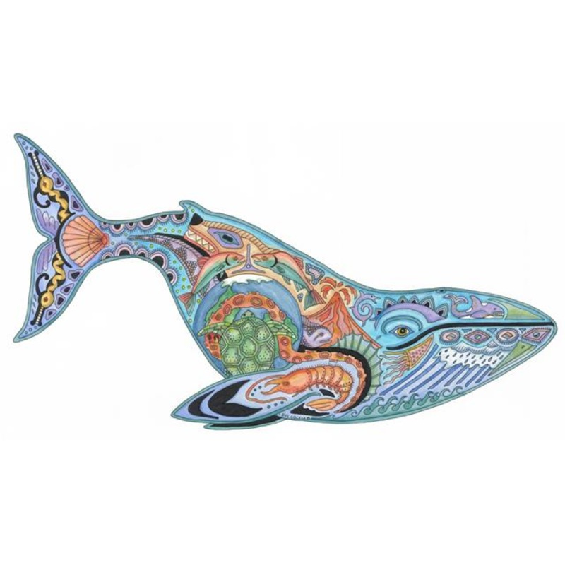Great wisdom, power and keen intuition represent the Blue Whale. They understand the sacred power of water and realize the importance of taking time out to breathe. Their sensitivity to sound and movement connects them to the core energy of life. Whale asks us to remember our past and listen to its stories so we can pass them along to our children. Blue whales are the largest animals living on Earth. Look inside to find the Orca, Krill and Sea Turtle and also the underwater volcano while the shy Octopus wraps around the Eel. See the Ladybug who is swimming under Sea Turtles flipper bringing you good fortune and happiness!