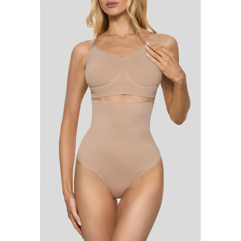 BOOMBA | Beige High-Waisted Thong Shapewear
