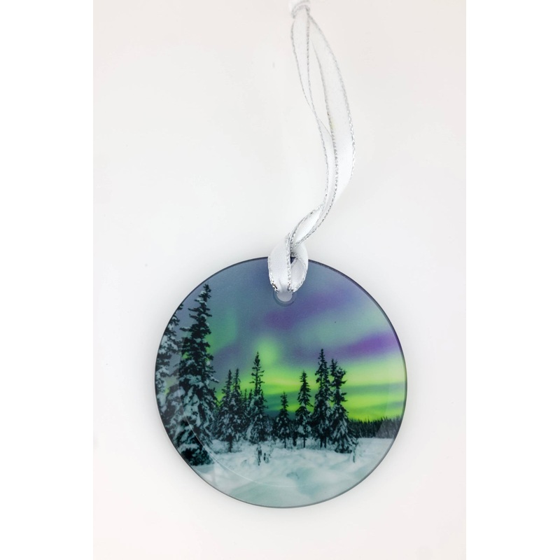 Authentic Alaska aurora photographby photographer Amy J JohnsonImprinted on3 x 3 beveled glassComes with a hanging ribbon and black velvet pouch