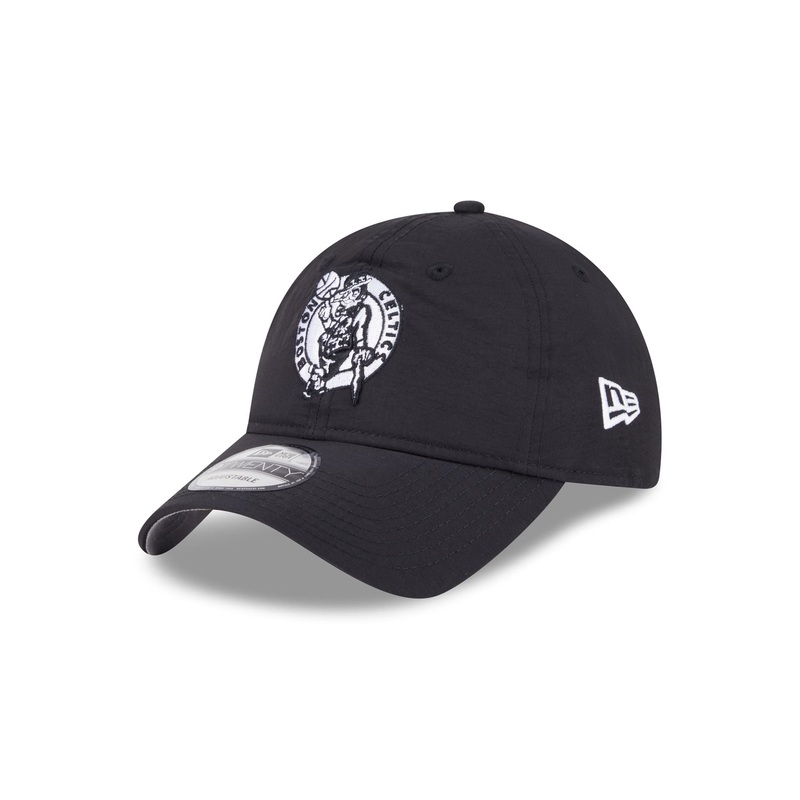 The Boston Celtics Everyday Nylon Black 9TWENTY Adjustable Cap features an embroidered Celtics logo at the front panels with an adjustable strapback closure at the rear and a gray undervisor.