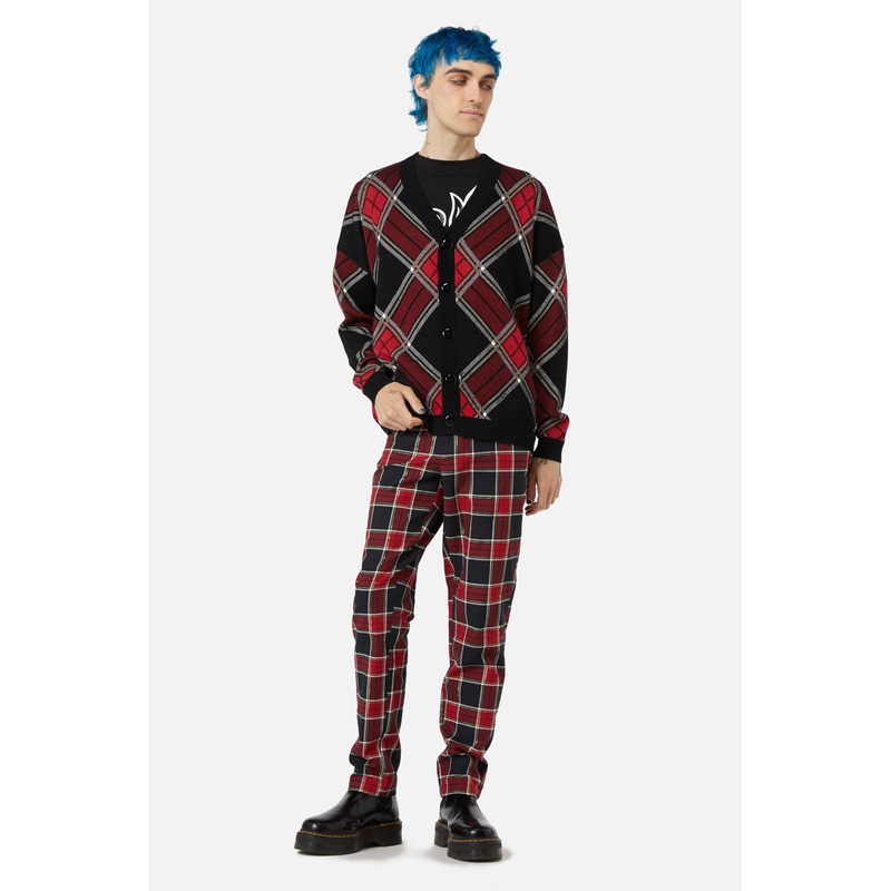 Tartan Knit-Features 'Boundless' Tartan Design-Button Front-Contrast Rib Details On Placket, Hem & Cuffs-Relaxed Fit-Made From Cotton-Available In RedProduct Code: DBFZ022