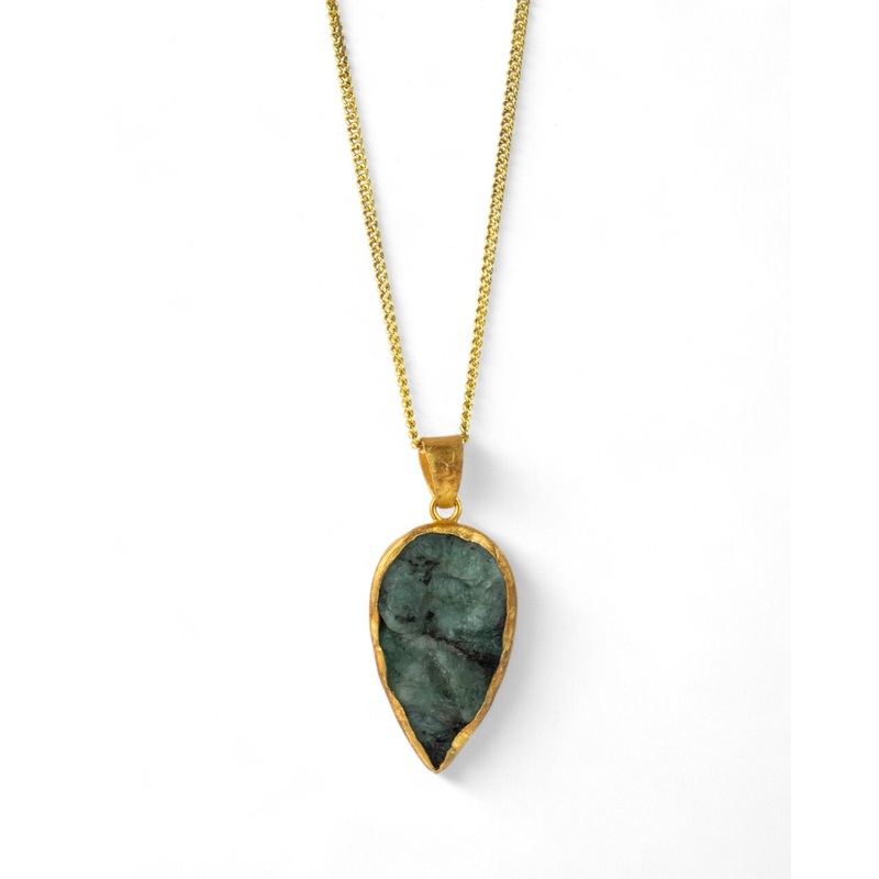 The Brazilian Rough Emerald Pendant blends the organicbeauty of raw gemstones with the elegance of fine craftsmanship.