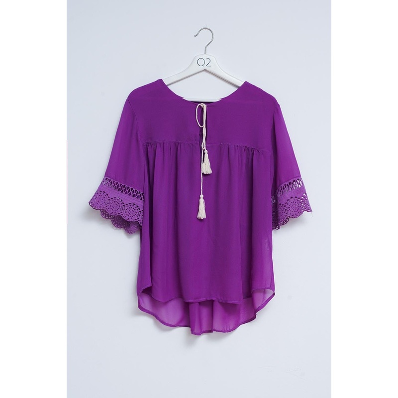 Broderie Tie Front Blouse In Purple