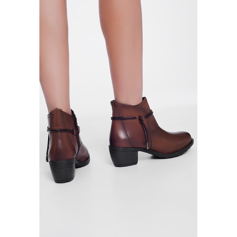 Brown Blocked Mid Heeled Ankle Boots. These 100% genuine leather brown ankle boots have a round toe and a medium block heel with rope detail and a size zipper. The neutral brown color means these boots will go with so many outfits. We love ankle boots beca