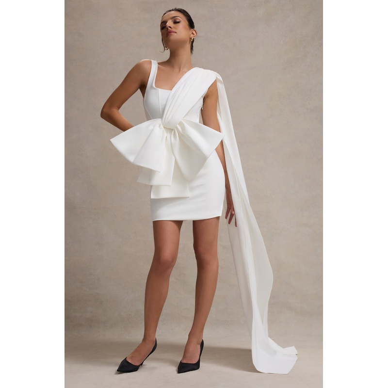 Brulee | Cream Scoop-Neck Sash Mini Dress With Bow