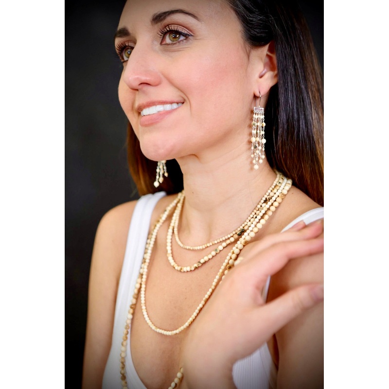 Fossil Mammoth ivory is found in Alaska's permafrost.925 Sterling Silver French HooksLength: 2 1/4"Information card included