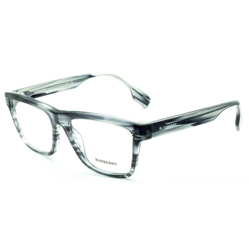 BURBERRY Full Rim Frames - 100% Authentic - B 2387 4097 Gloss transparent striped grey acetate frames and arms inlaid with Burberry logos Brand new - Never been worn Lens Width = 55mm Frame Height = 47mm Bridge = 18mm Temple (Arm Length) = 150mm Measures 1