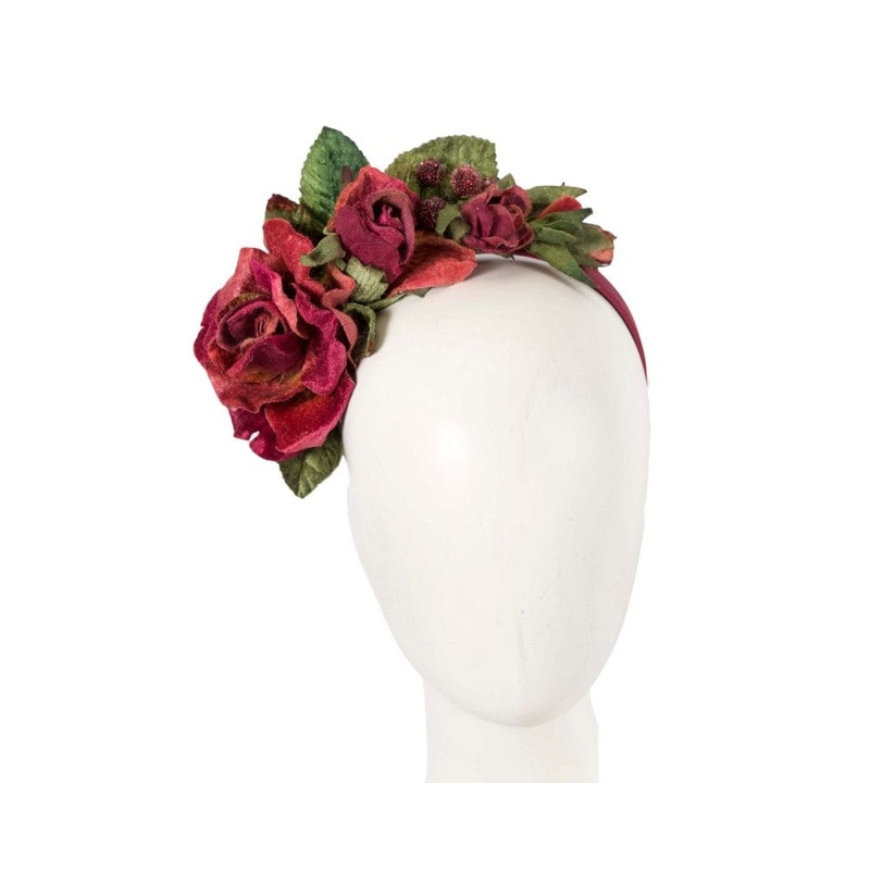 Large burgundy wine vintage velvet flower on the headband. Elegant choice for any special occasion. Made in Australia Respected Max Alexander brand Flower headband