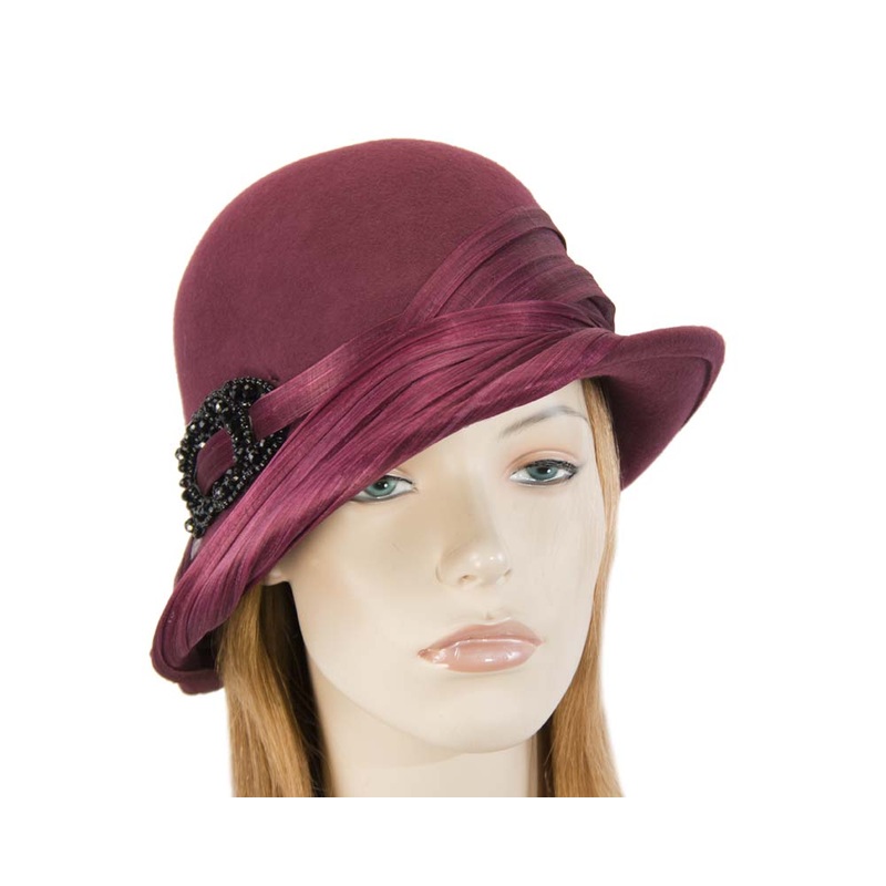 Burgundy wine felt draped cloche hat