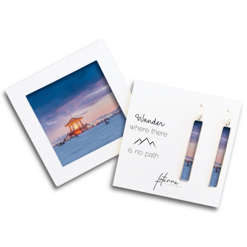 Looking for the perfect way to remember your time at Burning Man? These stunning earrings feature a beautiful image of a sunset, captured perfectly in the midst of the desert. They’re the perfect way to keep the memories of your time at this incredible event alive, and they also make a great conversation starter!