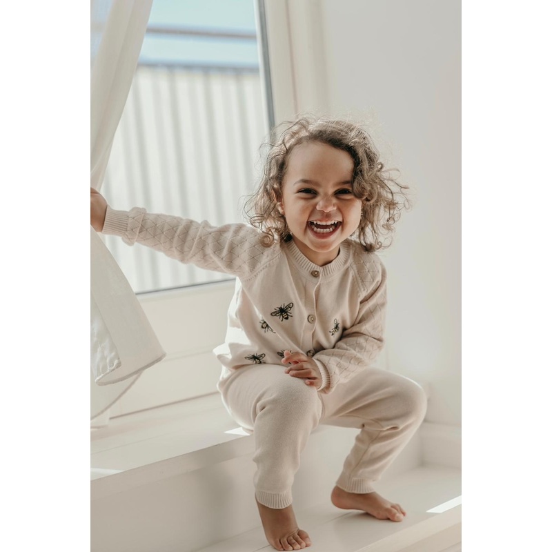 Product Information:A unique cardigan adorned with bees, adding a fun and lively touch to any wardrobe. Perfect for both casual and special occasions.Color: BeigeMaterial: 100% organic cottonCare Instructions:Machine wash at 30C (86F)Do not tumble dryWash