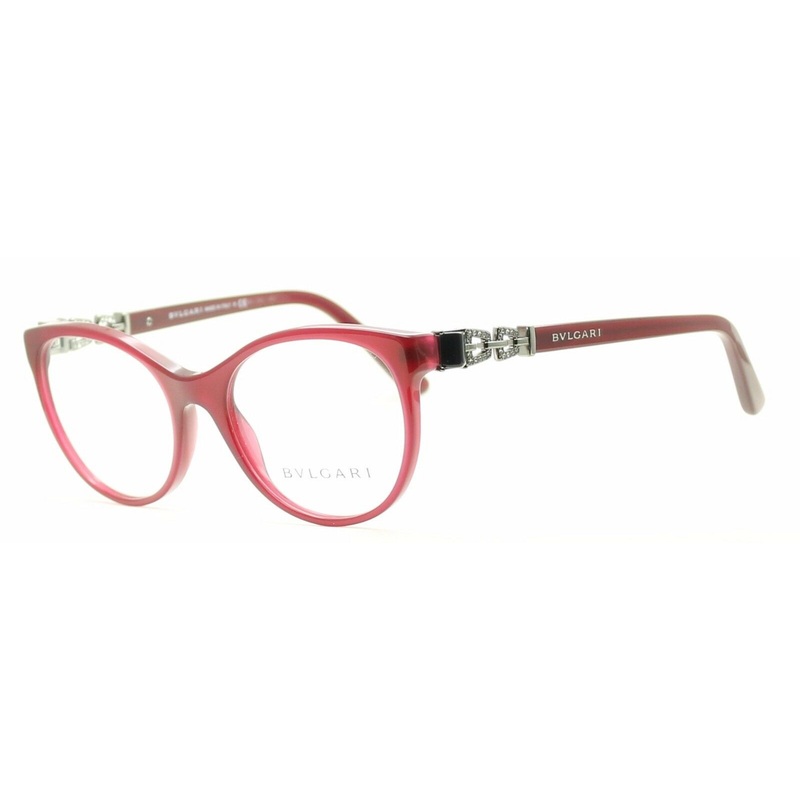 BVLGARI Ladies Full Rim Frames - 100% Authentic - 4099-B 5333Gloss transparent burgundy red acetate frames with matching arms inlaid with Bvlgari logos and stone set ruthenium hingesNever been wornLens Width = 51mmFrame Depth = 45mmBridge = 18mmTemple (Arm