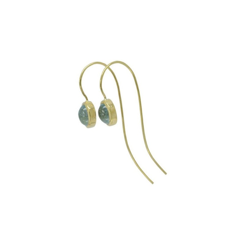The Cabochon Aquamarine Hook Gold Earrings are elegant and versatile.