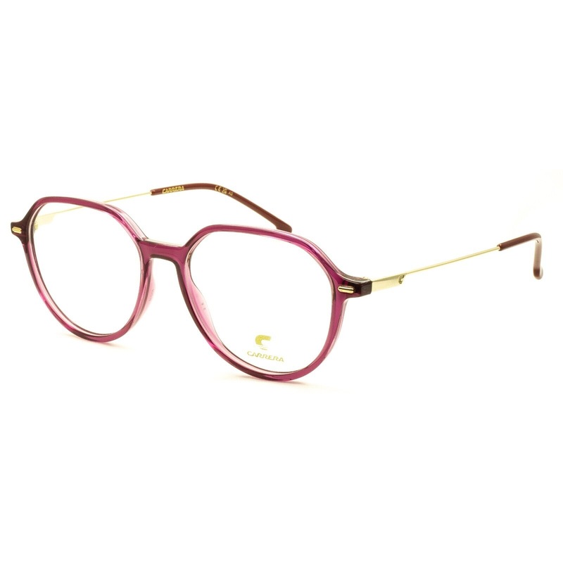 CARRERA EYEWEAR FullRim Frames100% Authentic - 2044T LHFGloss transparent fushia acetate framesPolished gold metal armsGloss dark red acetate arm endsBrand new - Never been wornLens Width = 50mmFrame Height = 47mmBridge = 15mmTemple (Arm Length)= 135mmMeas