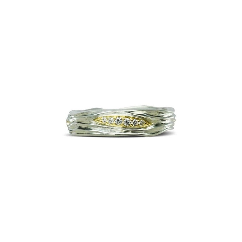 Carved Water Mixed Metal Diamond Ring (6mm)