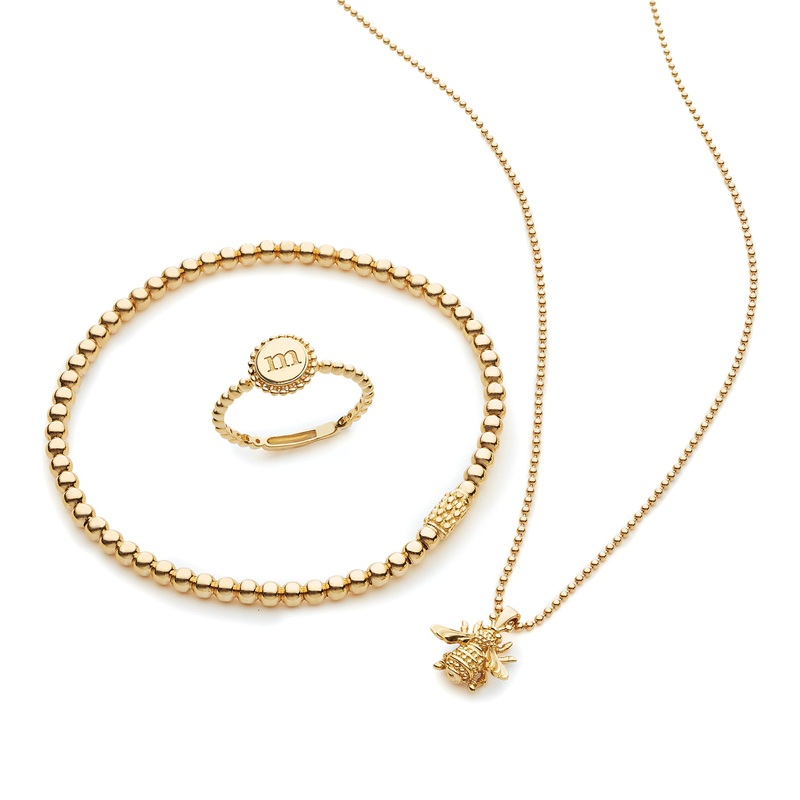 Adelicate trio of 18K gold pieces that style perfectly together.18K GoldNecklace adjustable 16 to 18 inchesRing available in sizes6 to 8Bracelet stretch fit accommodates most wrist sizes