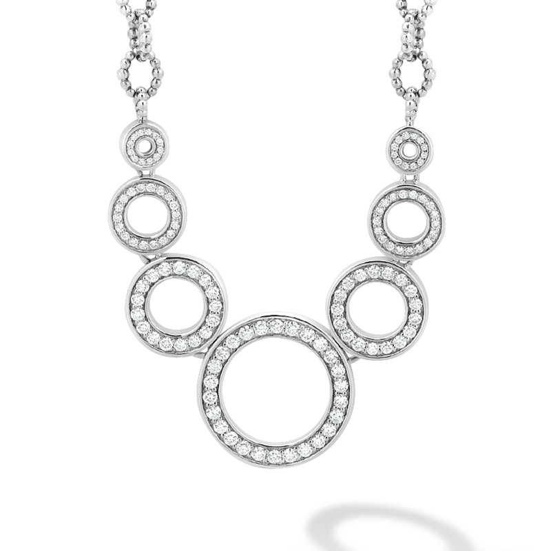 Seven diamond circles with Caviar links form this statement necklace. diamonds are the highest quality natural stones.