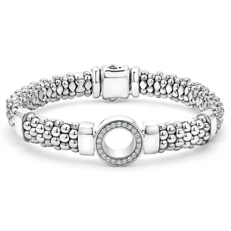 A sterling silver bracelet with one diamond circle station. diamonds are the highest quality natural stones.