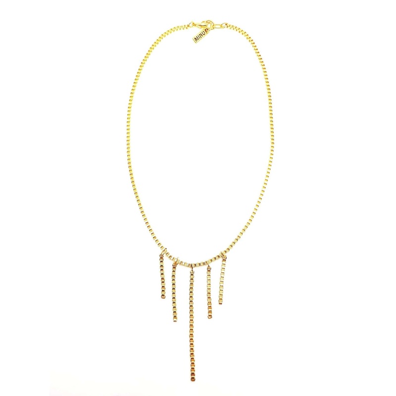 16" gold plated box chain necklace is both delicate and substantial enough to highlight any look this season. 1" extender for adjustments, lobster clasp.
