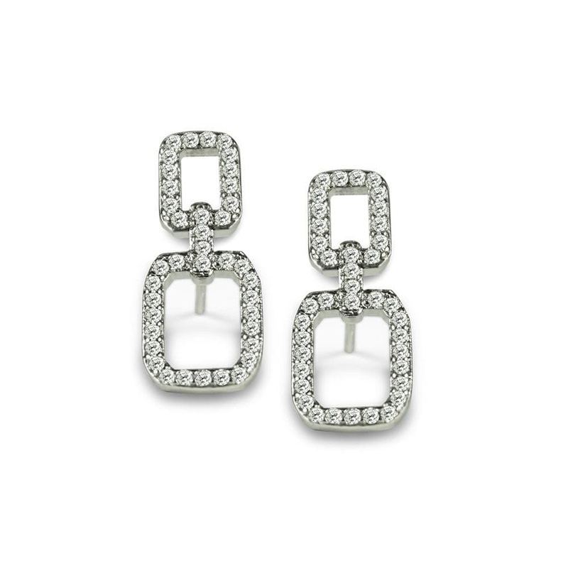 Stainless steel and paved with CZ crystals, this pair of earrings resemble chain links that will add some bling to your day.
