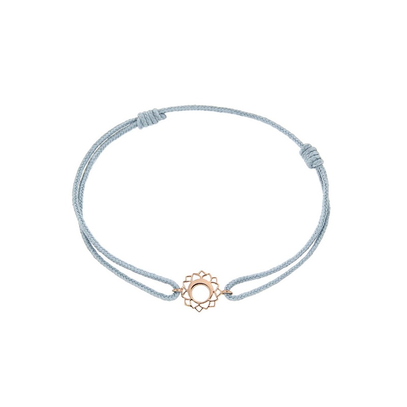 The Chakra Bracelet (Vishuddha) is a cord bracelet featuring the Vishuddha symbol available in 18kt rose or white gold.The 7 Chakras are the spiritual energy centres within the body. Vishuddha is the throat chakra, related to the colour blue. It represents