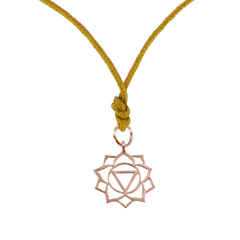 The Chakra Pendant (Manipura) is a cord necklace featuring the Manipura pendant available in 18kt rose or white gold.The 7 Chakras are the spiritual energy centres within the body. Manipura is the solar plexus chakra, related to the colour yellow. It repre