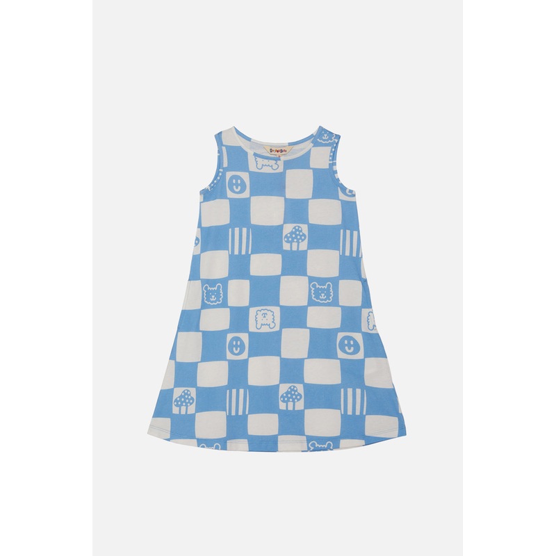printed cotton jersey dress- cotton elastane stretch fabrication- rounded neckline- sleeveless style dress- a line shaping - perfect for everyday wear- features exclusive kids print Product Code: DKGU090105