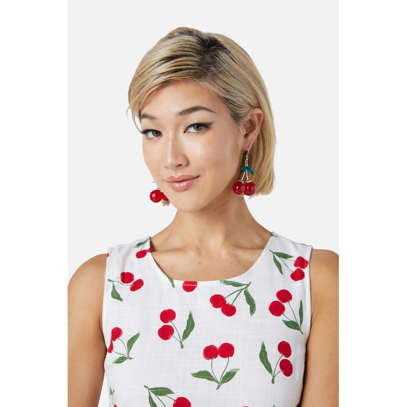 Cherry Earrings- A fun pair of earrings- Cherry design- Red with green leaves- Hardware silver in colour- Hook ringProduct Code: PWFY202