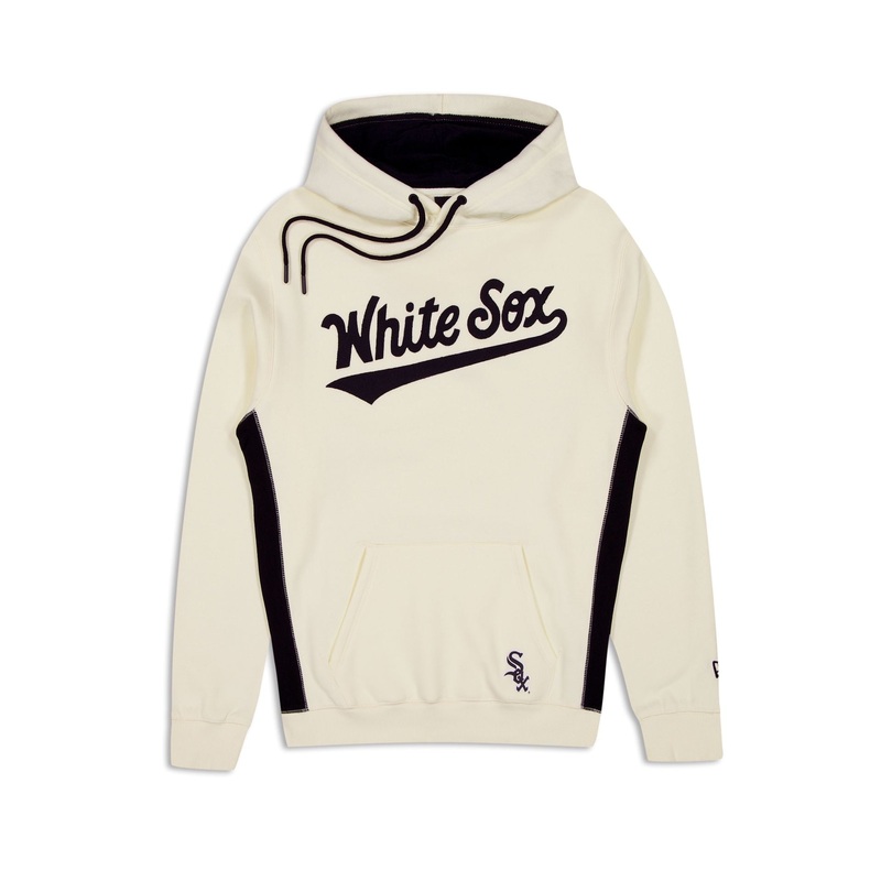 The Chicago White Sox Ballpark Classics Hoodie features an embroidered White Sox wordmark at the chest with a team logo screen-printed at the kangaroo pocket and team color details throughout.Fabric: 67% cotton, 33% polyester
