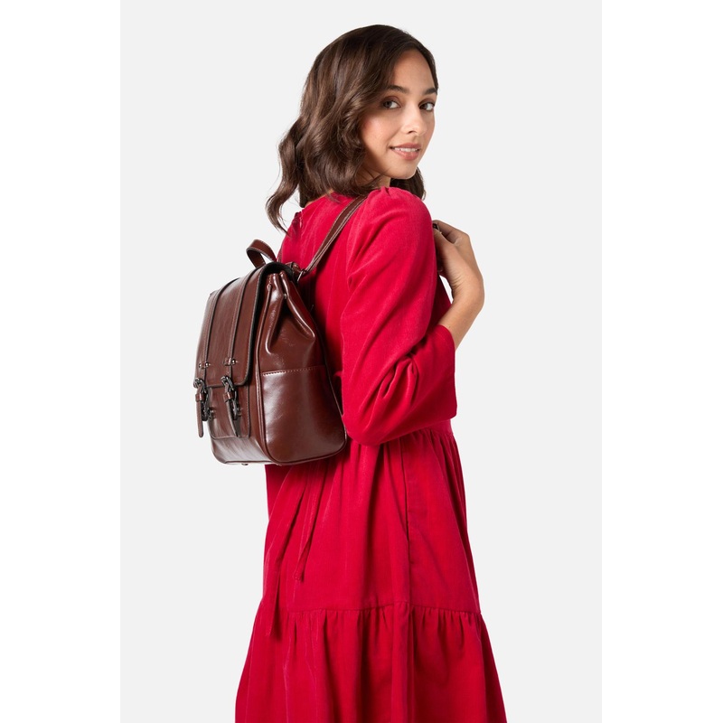 Chocolate Backpack- A great, multi way back- Easy to style- Structured design- Vegan leather- Hardware gunmetal in colour- Wear as a backpack or pull handle up to wear cross body- Available in chocolate- Approximately H=26cm, W=25cm, D=9cmProduct Code: PWF