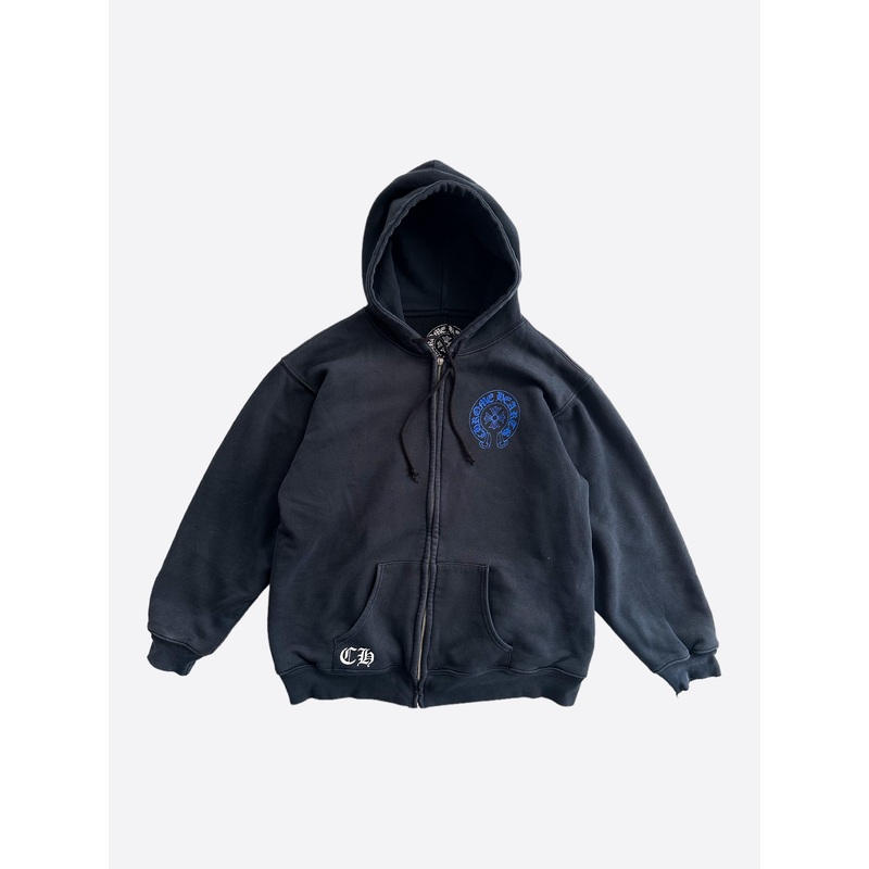 Chrome Hearts Black & Blue Cross logo Thermal Zip Up Hoodie