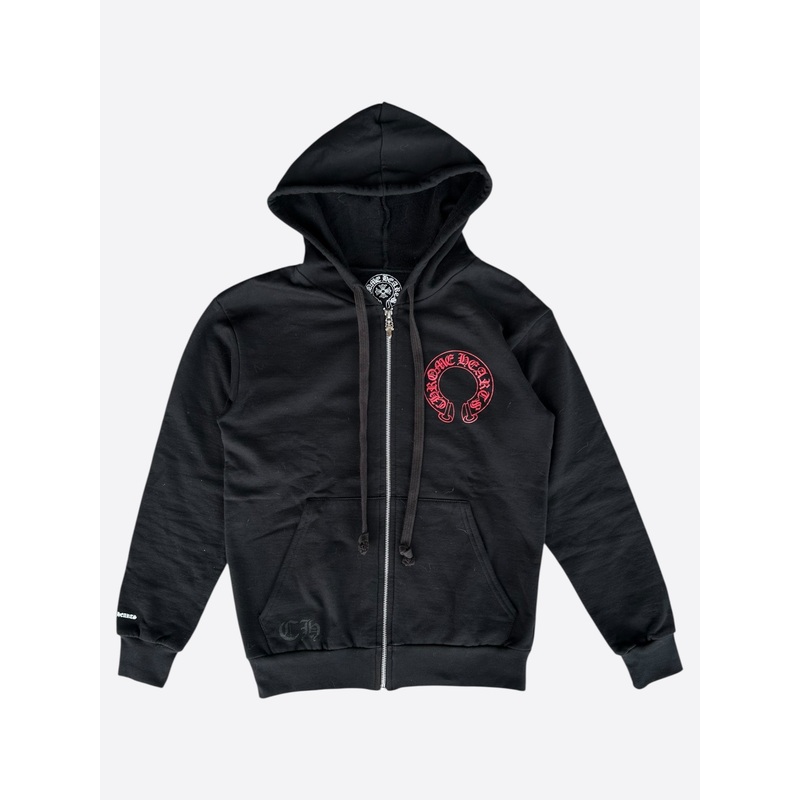 A246487092Chrome Hearts Black & Red Cemetery Horseshoe Logo Zip Up Hoodie