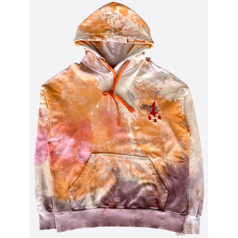 Chrome Hearts Off-White CVTVLIST Orange Tie-Dye Bleached Hoodie