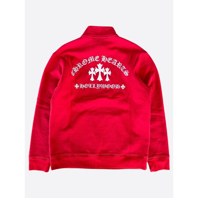 A246487361Chrome Hearts Red & White Triple Cross Embroidered Quarter Zip Sweater