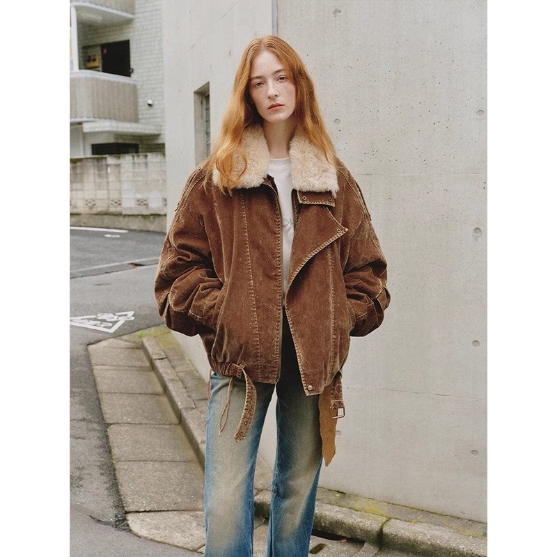 The flocked denim is treated with soft washing (making the fabric surface soft and skin-friendly, the micro-velvet touch is delicate and comfortable, and the mottled layering appears under the light source. The unique silky light of the flocking collides with the denim to create a nostalgic retro aesthetic essence.