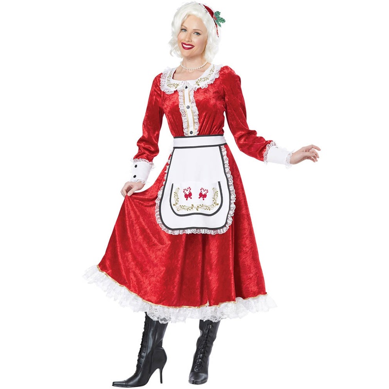 Item Includes:Dress.Headband.Apron.Fit and Sizing:See size chart above for details.Fabrics and Care:100% PolyesterHand wash, hang dry.Please note: Wig, necklace and boots not included.Merry Christmas!Behind every great Santa is a great Mrs Claus! You'll ma