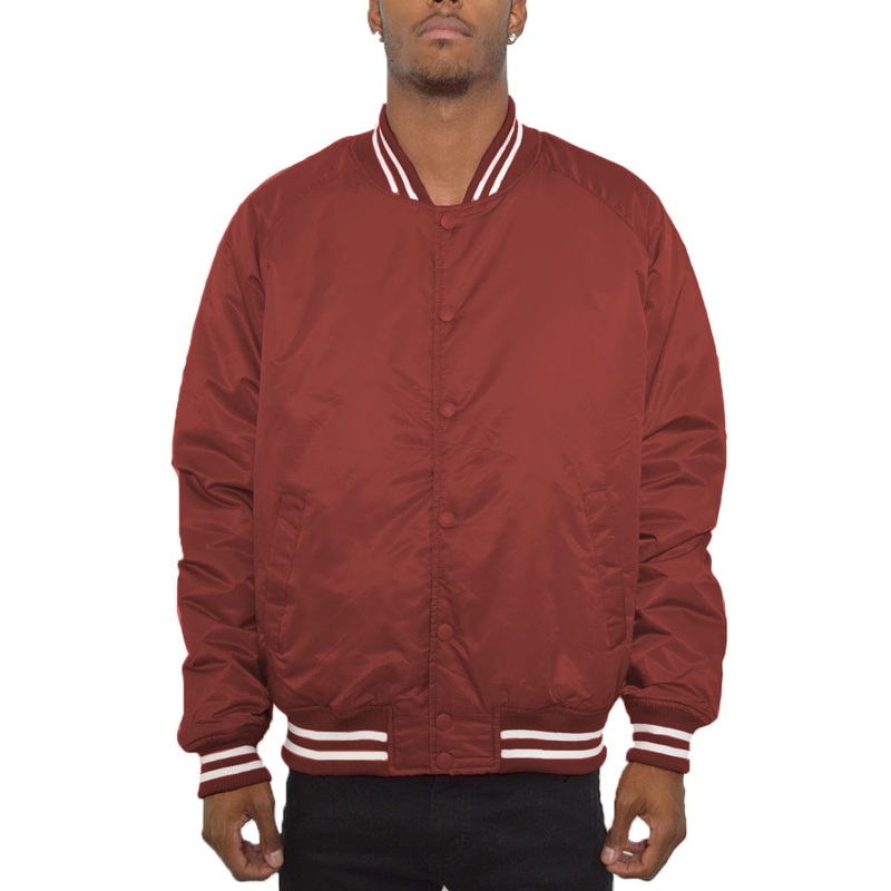 Classic Varsity Windbreaker Bomber Jacket in Burgundy