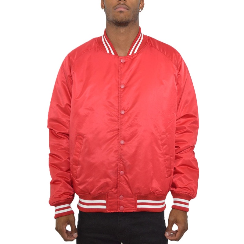 Classic Varsity Windbreaker Bomber Jacket in Red