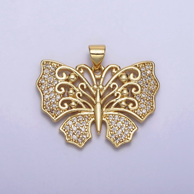 Clear Micro Paved CZ Monarch Butterfly Garden Insect Pendant | AA088