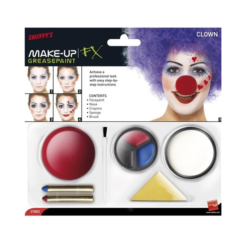 Get creative with this Clown Makeup Kit, containing a red nose, crayons, face paint and a sponge applicator. Perfect for transforming you into something a whole lot funnier.