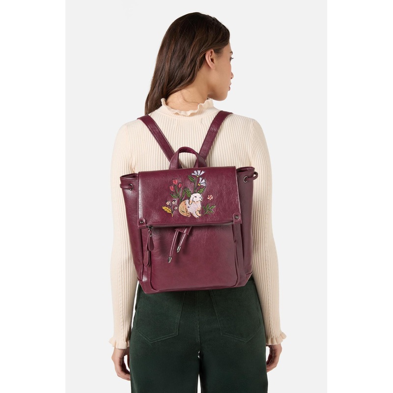 Coco Rabbit Backpack- A Princess Highway exclusive- A cute vegan leather backpack- Burgandy in colour- Multi coloured bunny and flower embroidery- Magnetic and drawstring closure- Adjustable straps- H=29cm, W=25cm, D=12cm (Approx)Product Code: PWFZ064