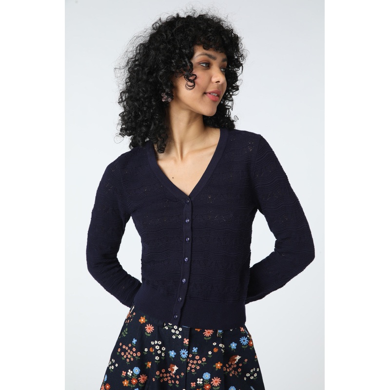 Long sleeve v neck cardi - v neckline - long sleeve with a ribbed cuff - button down front - ribbing around the hem- cropped length- made from organic cotton - available in navy and creamProduct Code: PGFW102