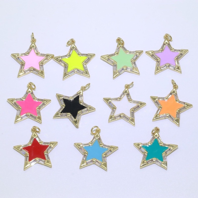 Colorful Enamel Star Charm Pendant, Red Yellow Pink Green Blue Enamel Cubic Pendant, 14K gold Filled Celestial Jewelry Making Supply M-325-M-335 BABY PINK